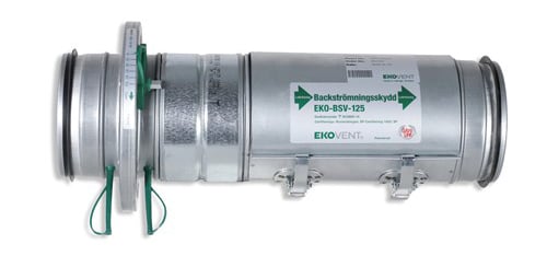 Eristetyn kanavan takaisinvirtaussuoja EKOBSV2 yhdistetyllä EKOSI-säätöpellillä myös isompiin kanavakokoihin. Kolme tuotetta yhdellä asennuskerralla säästää tilaa ja asennusaikaa. Rakenne mahdollistaa helpon huollettavuuden myös eristetyssä kanavassa. Sisäosa helposti irrotettavissa puhdistusta ja kanavanuohousta varten myös tässä mallissa. Täyttää tiiviysluokan C vaatimukset standardin EN 1751:1998 mukaisesti. Koot Ø100 – Ø315 mm.