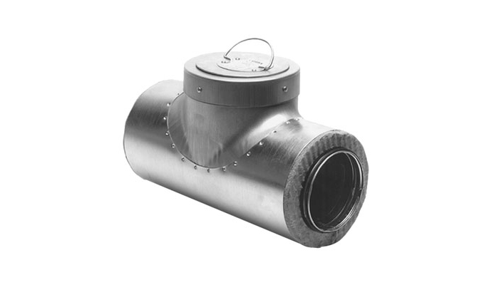 Eristetty T-haara puhdistusluukulla.